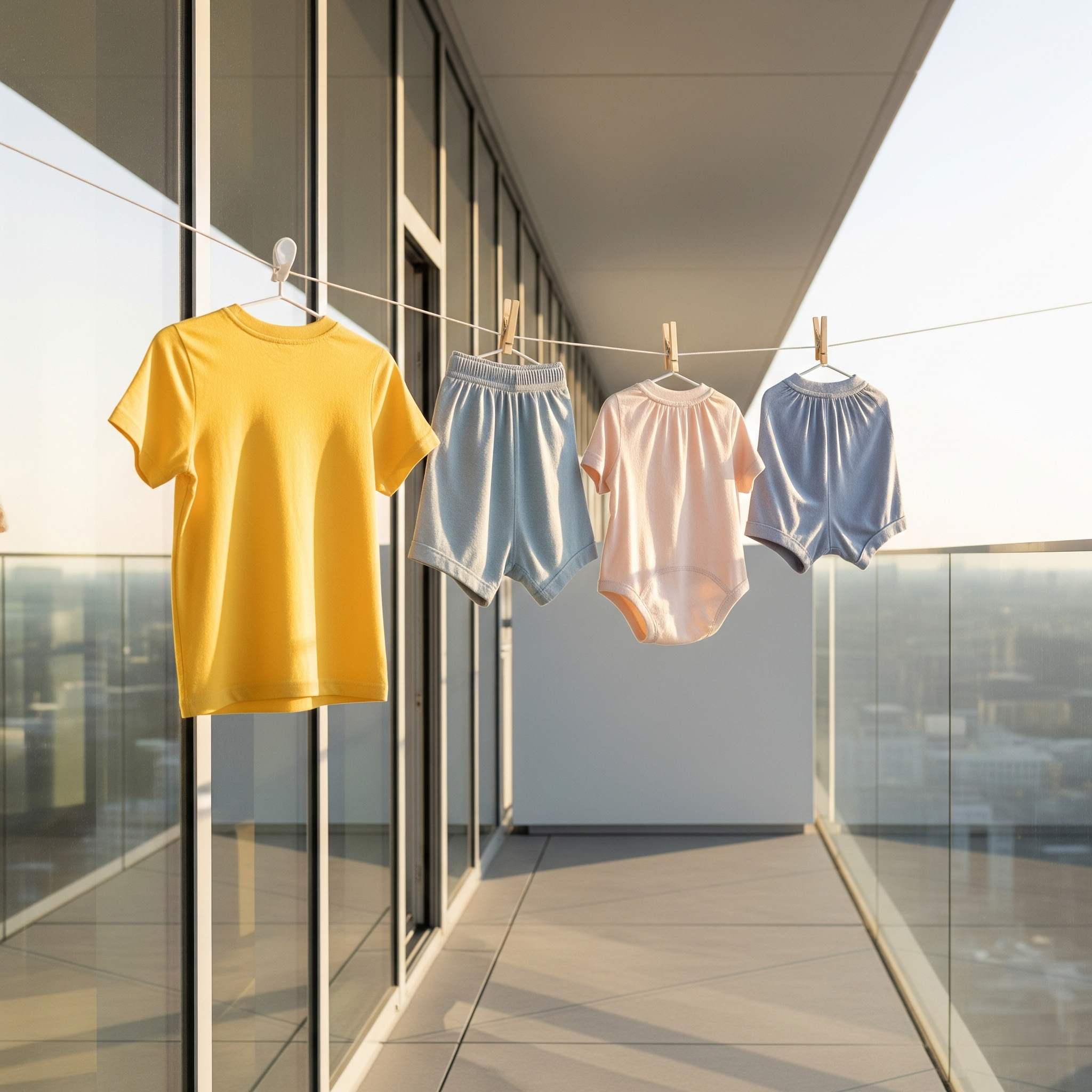 Mưa đến bất chợt, bé có thể bị ướt khi ra ngoài hoặc trong lúc chơi đùa. Mẹ nên luôn chuẩn bị ít nhất 2–3 bộ đồ mỏng nhẹ, dễ thay, để tránh để bé mặc đồ ẩm quá lâu – nguy cơ gây cảm lạnh và kích ứng da.
