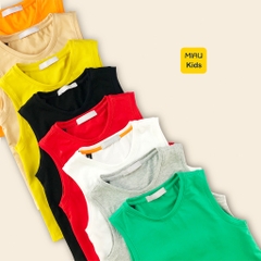 Áo sát nách bé trai với 8 màu sắc tươi sáng: Bạc hà, Trắng, Vàng, Xám, Beige, Cam, Đỏ, Đen - dễ dàng phối đồ theo sở thích của bé.