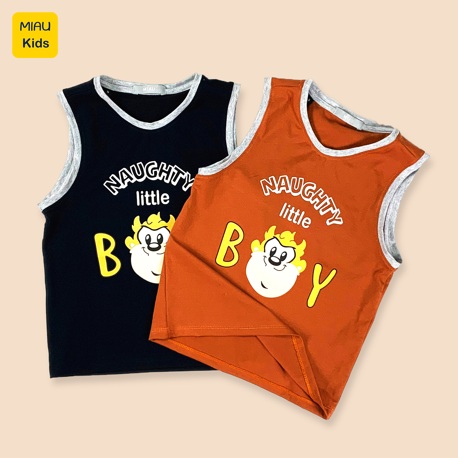 Bé trai nhà bạn sẽ trở thành chú khỉ con tinh nghịch và đáng yêu nhất với áo thun cotton hoạ tiết "Naughty Little Boy" siêu hot từ MiauKids!