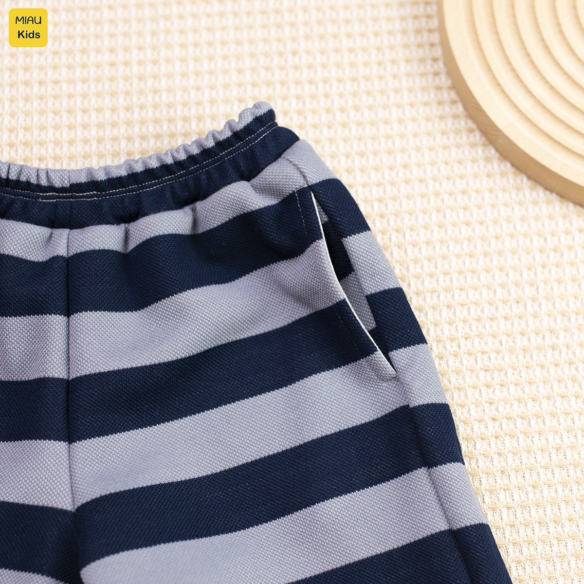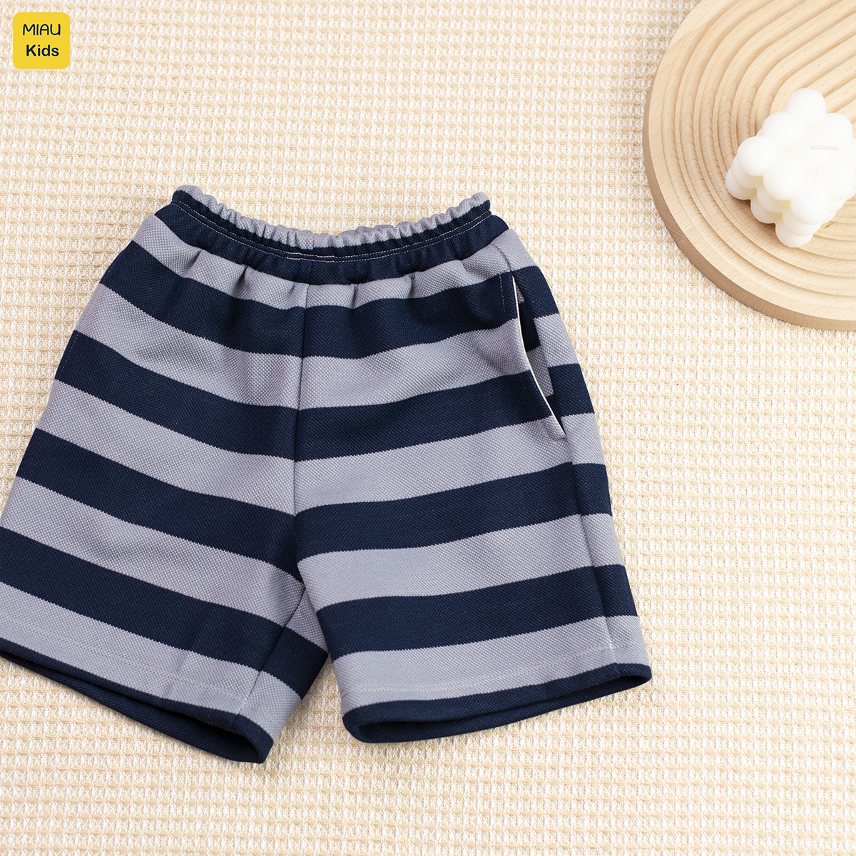 - Quần đùi kẻ sọc năng động với lưng thun co giãn