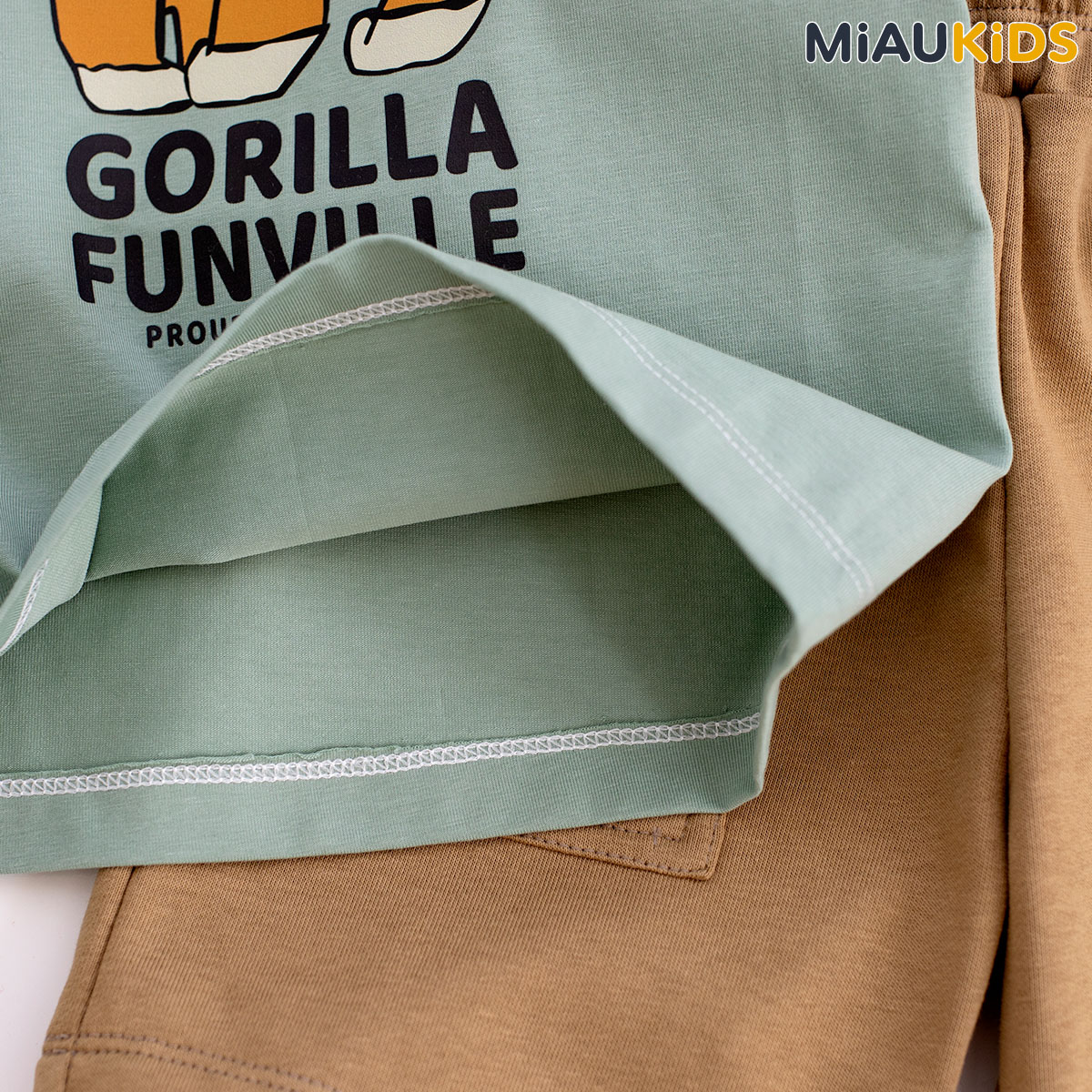 Bộ cộc tay bé trai với họa tiết chú Gorilla đáng yêu chính là item không thể thiếu trong tủ đồ mùa hè của các bé trai năng động! Đồ bộ bé trai này không chỉ mang đến vẻ ngoài cool ngầu mà còn thể hiện tinh thần "Proud to be Wild" - tự hào về sự tự nhiên và năng động của tuổi thơ.