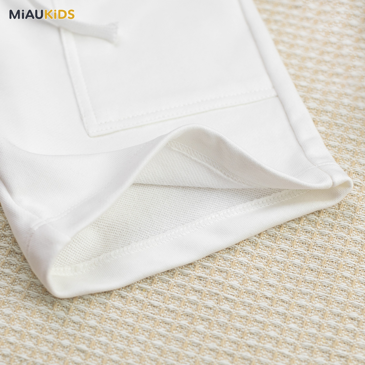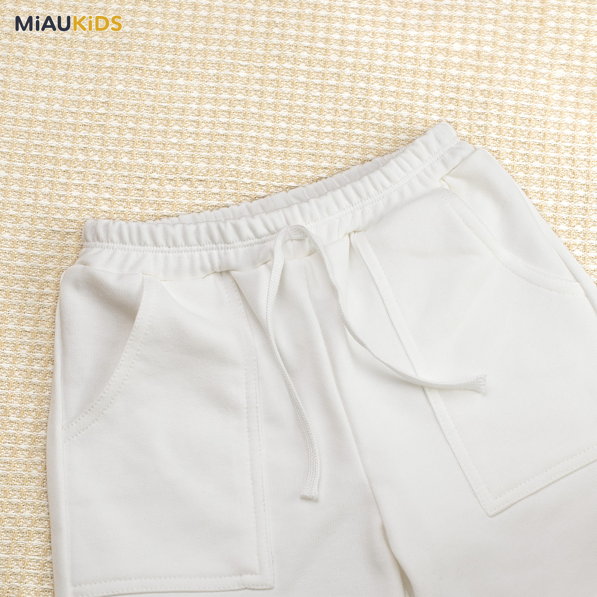 Quần đùi cotton bé trai có lưng thun co giãn thoải mái, không gây cảm giác bó sát. Túi phía trước được thiết kế vừa đủ để bé cất những "kho báu" nhỏ của mình. Màu trắng thanh lịch dễ dàng phối với mọi áo sơ mi, áo thun, tạo nên những outfit cực kỳ dễ thương.